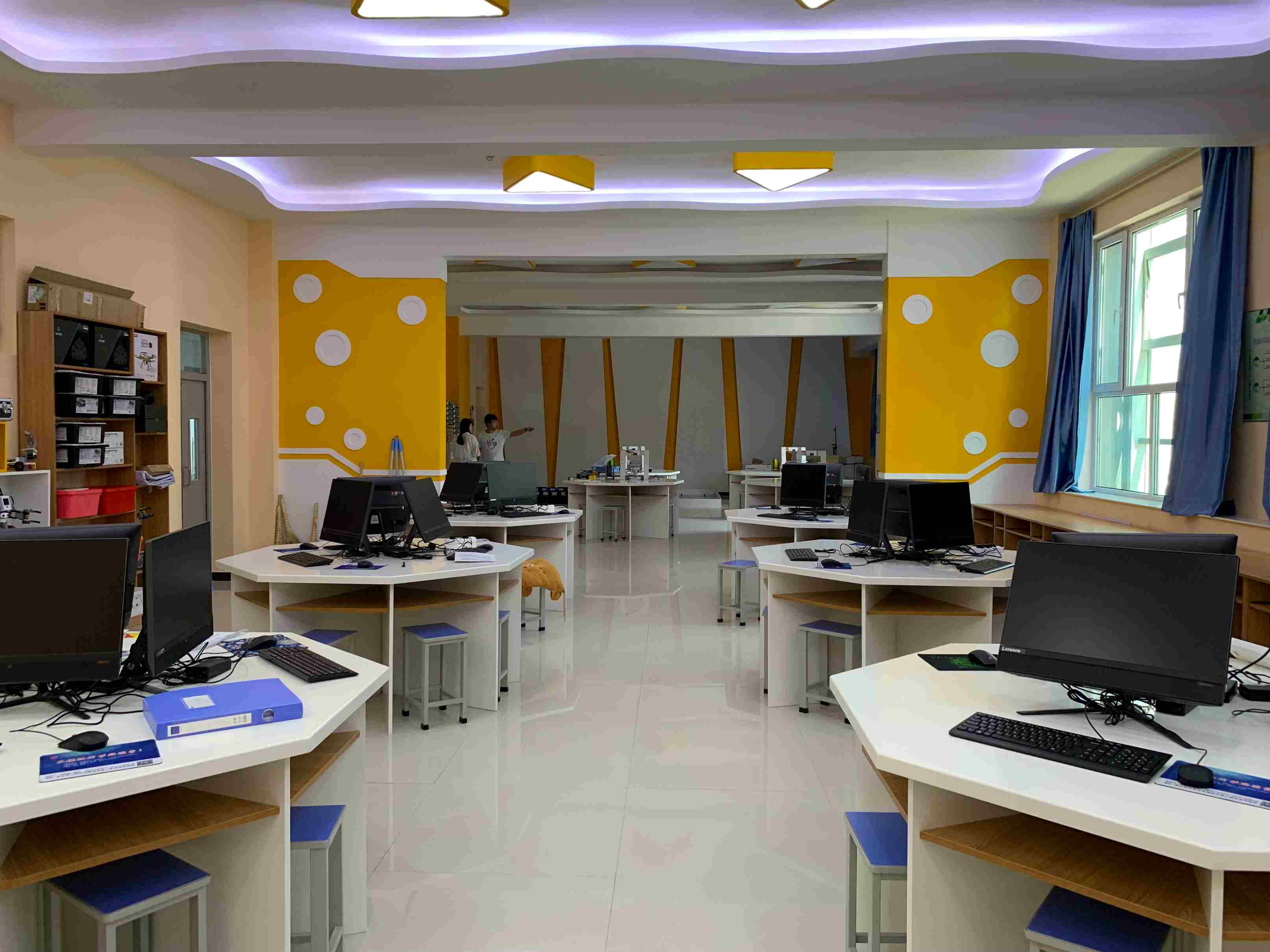 阿斑兔將機器人、創客、3D打印、航模等融為一體,研發、設計具有情景體驗、創意生成、原型制作、展示交流等多功能為一體的機器人教育教學場所,即創新教育實驗室,針對不同年齡段學生的特點、學校學情等,為其提供足夠的空間、設備和完善的課程體系。